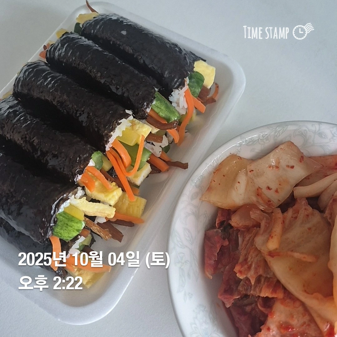 명절 음식 준비하러 시장 갔다 야채 많은 꼬마김밥 사와 딸과 점심으로 먹었다