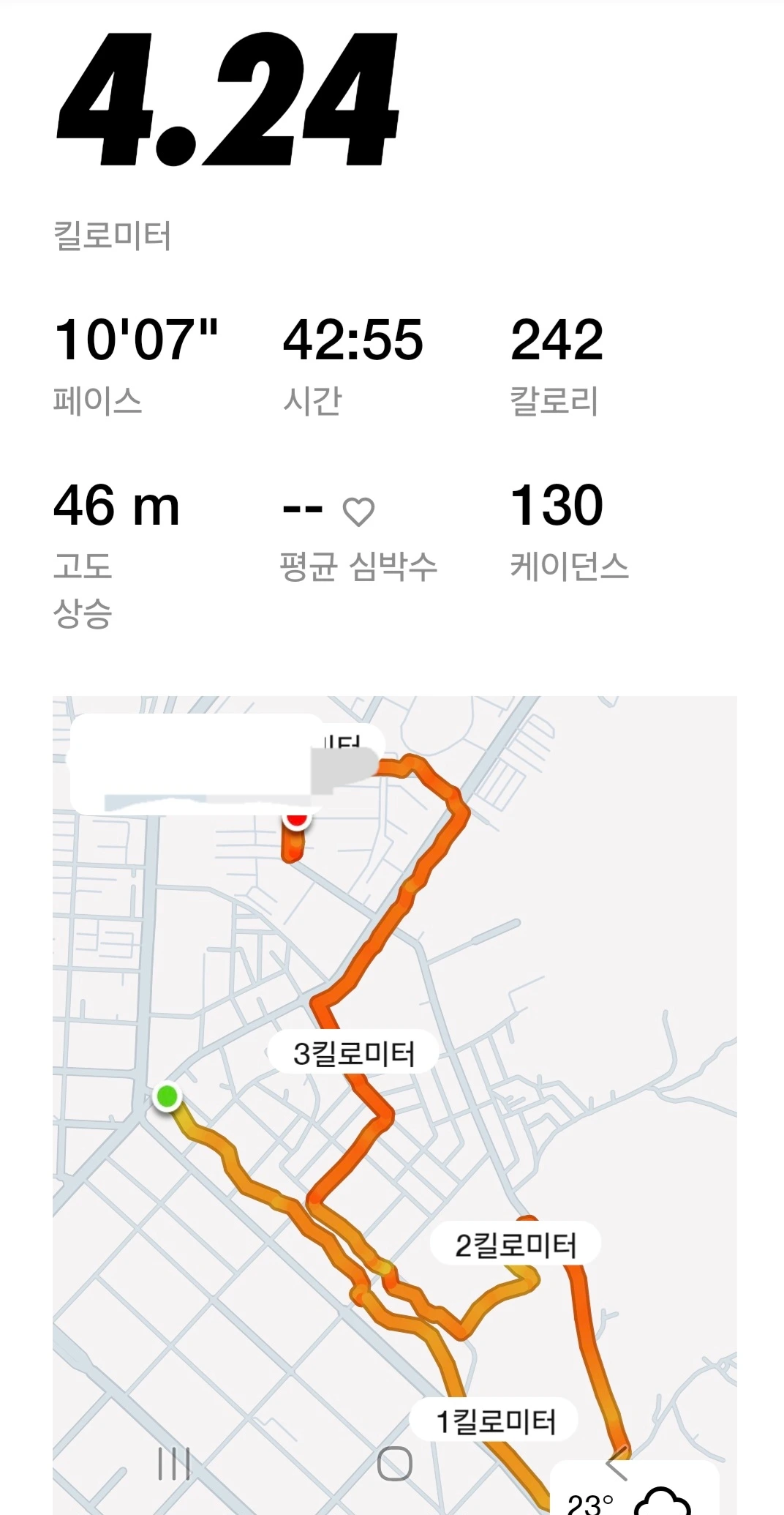 2.5킬로미터까지는 뛰고 나머지는 걸었다.