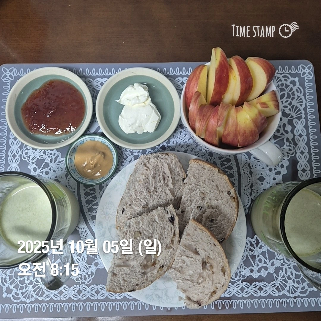 시댁 가야 해서 사과, 단백질 베이글, 단백질 파우더 타서 간단히 먹었다