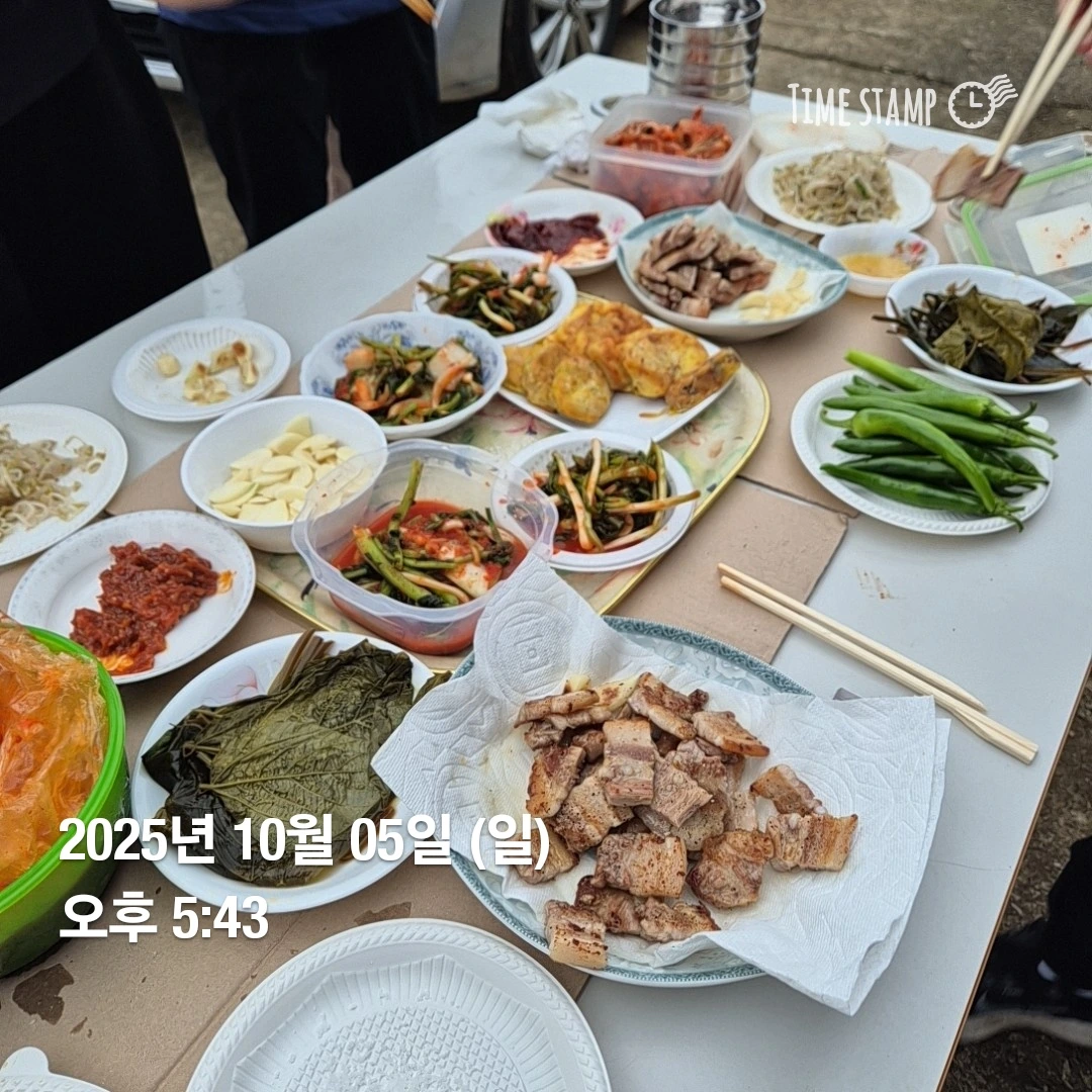 온 가족 모여 마당에서 삼겹살 파티~~~~