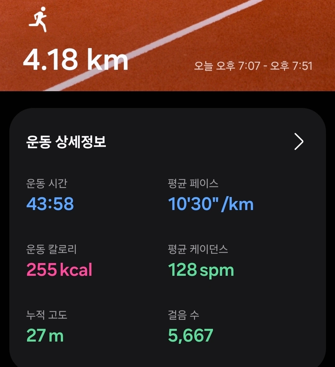 가랑비 맞으며 2킬로미터는 뛰고 나머지는 걸었다.