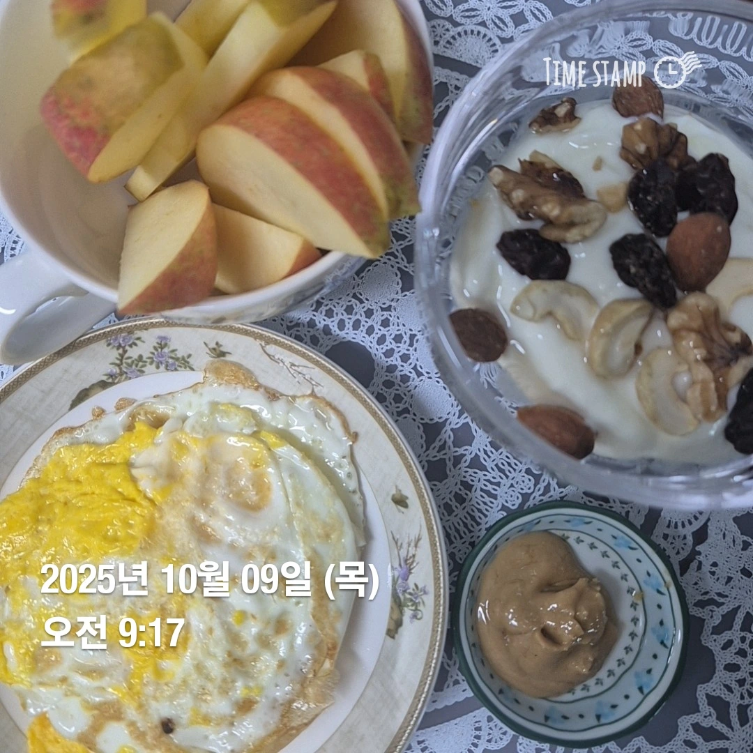 배 고픔이 느껴져서 욕심껏 달걀 두 개 프라이해 먹었다. 결국 사과를 남기고 말았다