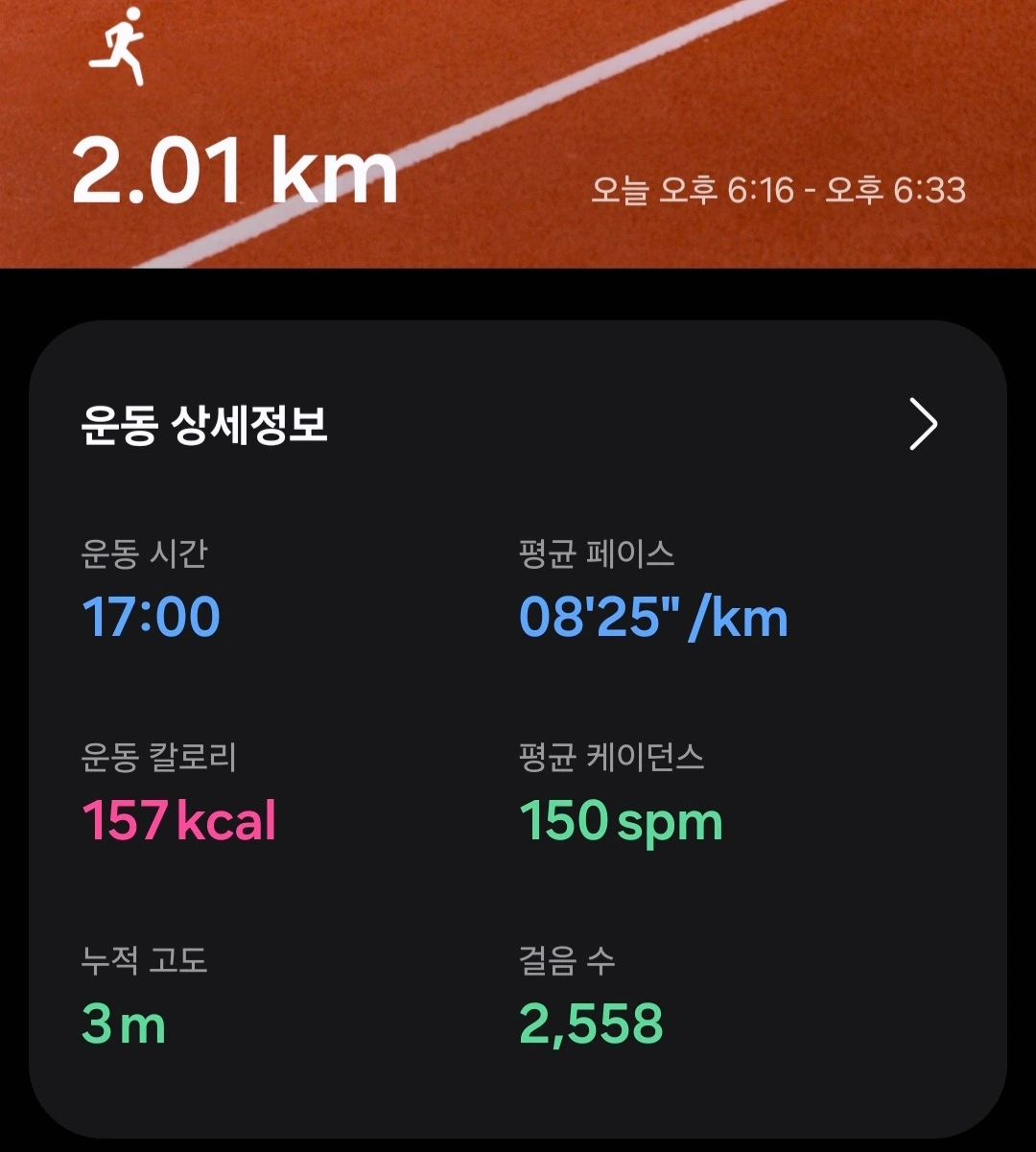 목표가 3킬로미터였기 때문에 좀 걷다 1킬로미터 다시 뛰었다.
