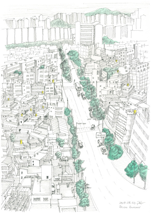 도로들이 바둑판처럼 촘촘하게 얽혀있고, 종단이든 횡단이든 일정 구간들은 지하화를 하던가 했더라면 좀 더 유기적인 도로의 흐름이 생기지 않았을까.