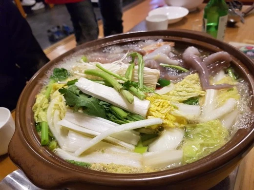 끓여진 연포탕을 영감님 앞에 내밀었더니 뭐냐 하는 얼굴로 쳐다보더군.