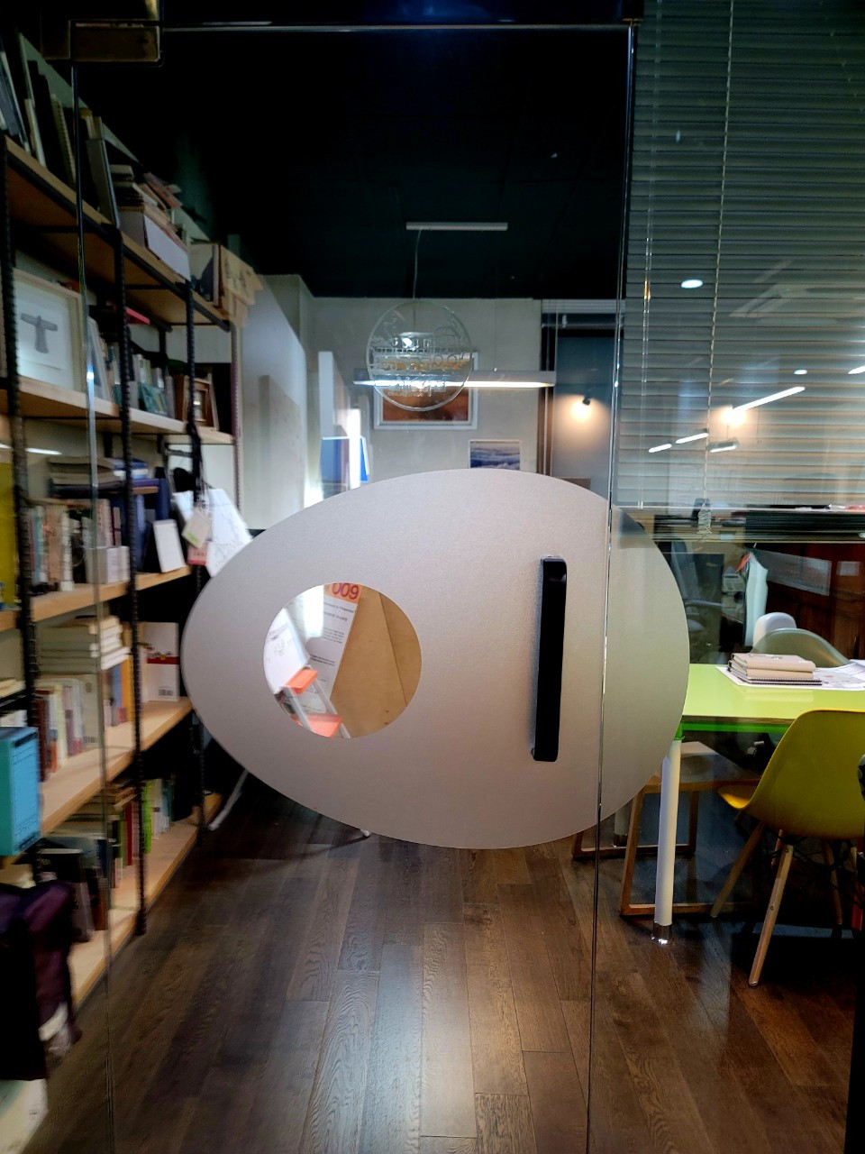 회의실 조명도 ‘알’의 형태로. 내 방의 출입구 문에도 ‘알’의 형상을 넣고 말이죠.
