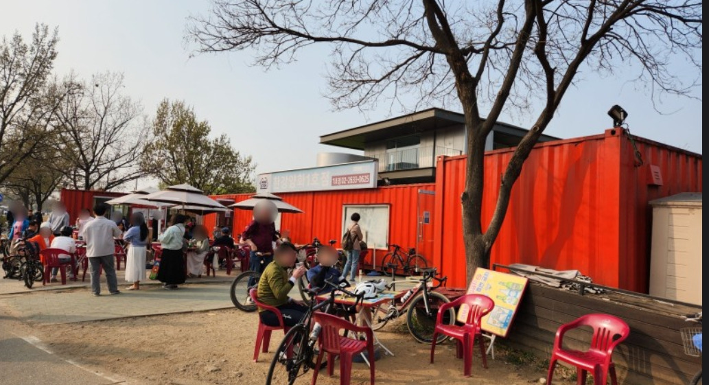 한강에서 자전거 도로를 타다 보면 양화지구에 붉은색의 컨테이너 편의점이 있다.