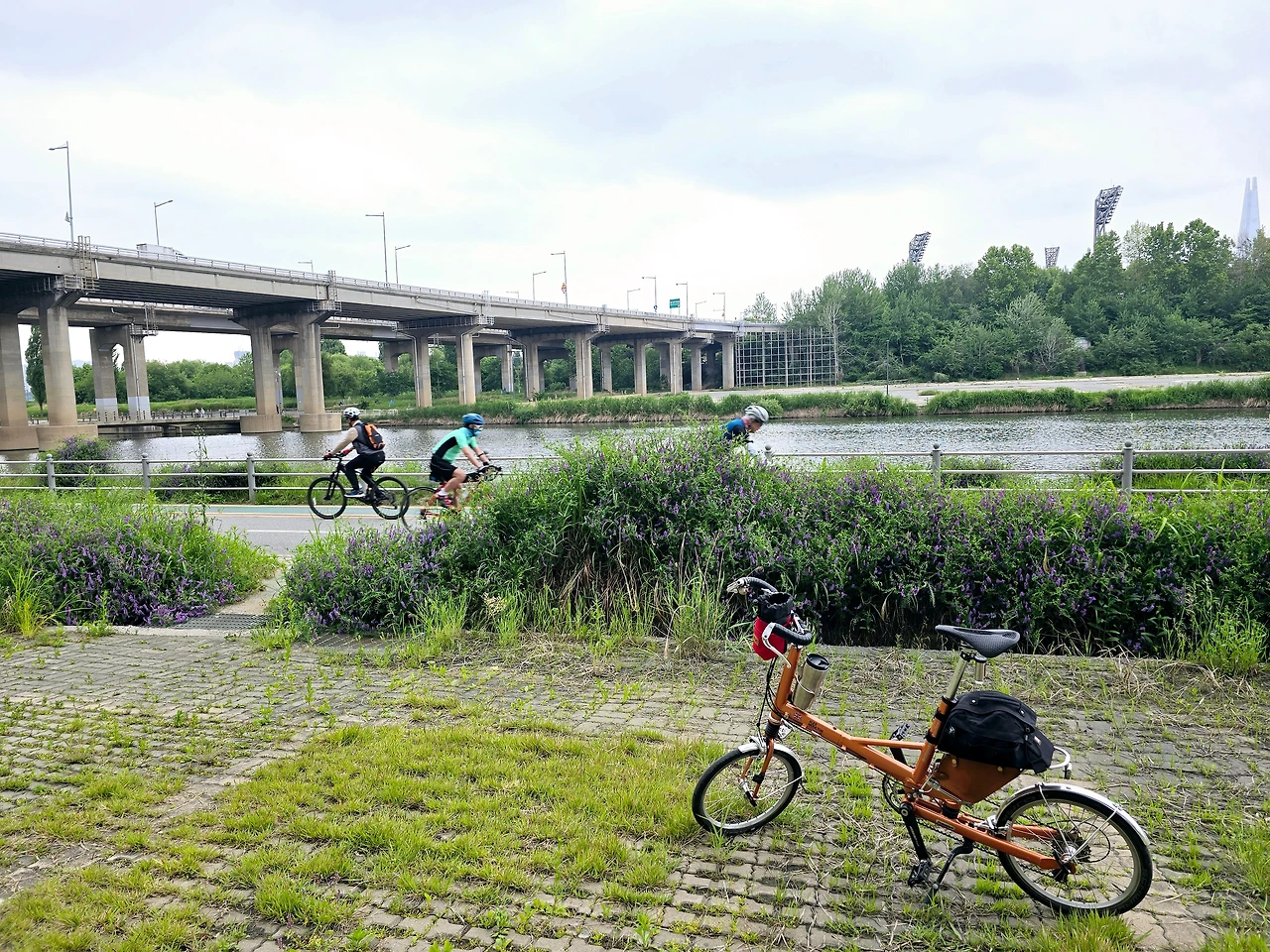 역시나 오늘도 한강은 공사 중이고, 공사 차량과 앞서거니 뒤서거니 경쟁을 합니다.
