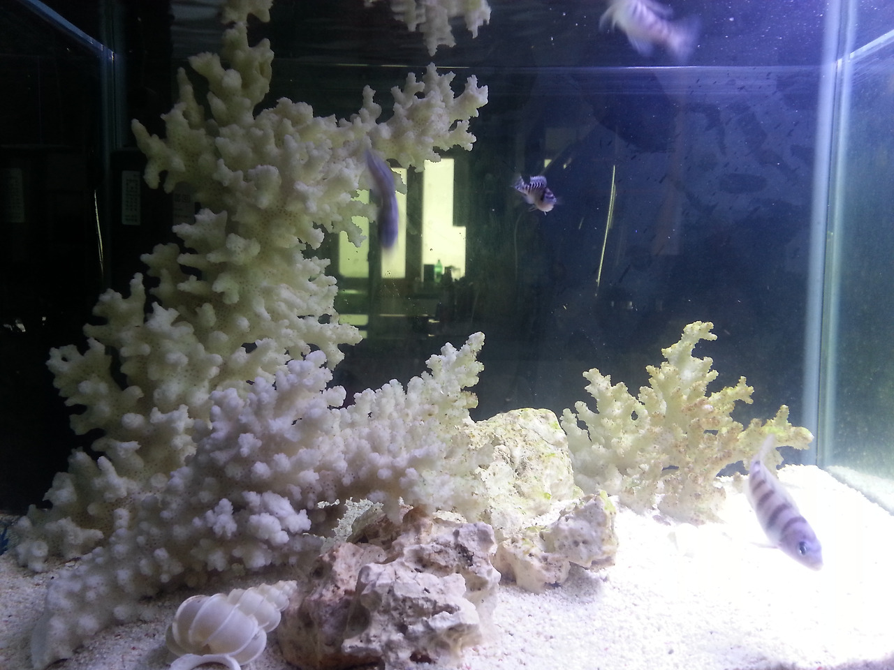 그러다 아이가 태어나려고 하면서 하나하나 주변에 어항을 넘기면서 이제는 2자 어항 한 개가 거실에 있고 사무실에는 6자 어항이 하나 남았다.