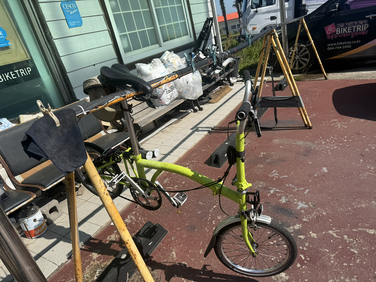 평소에 자주 타던 브롬톤을 일부러 골라서 놀멍 쉬멍 라이딩을 꿈꾸었는데….
