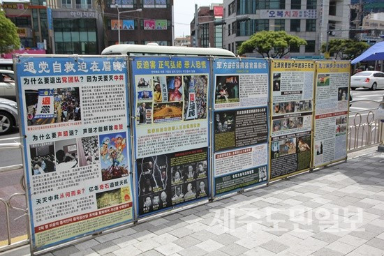 제주에 출장을 자주 가는 편인데, 내 기억으로 이미 십몇 년 전 제주 시내에 신라면세점이 세워진 그날부터 중국 ‘파룬궁’ 탄압 반대 시위가 있었던 것으로 기억한다.