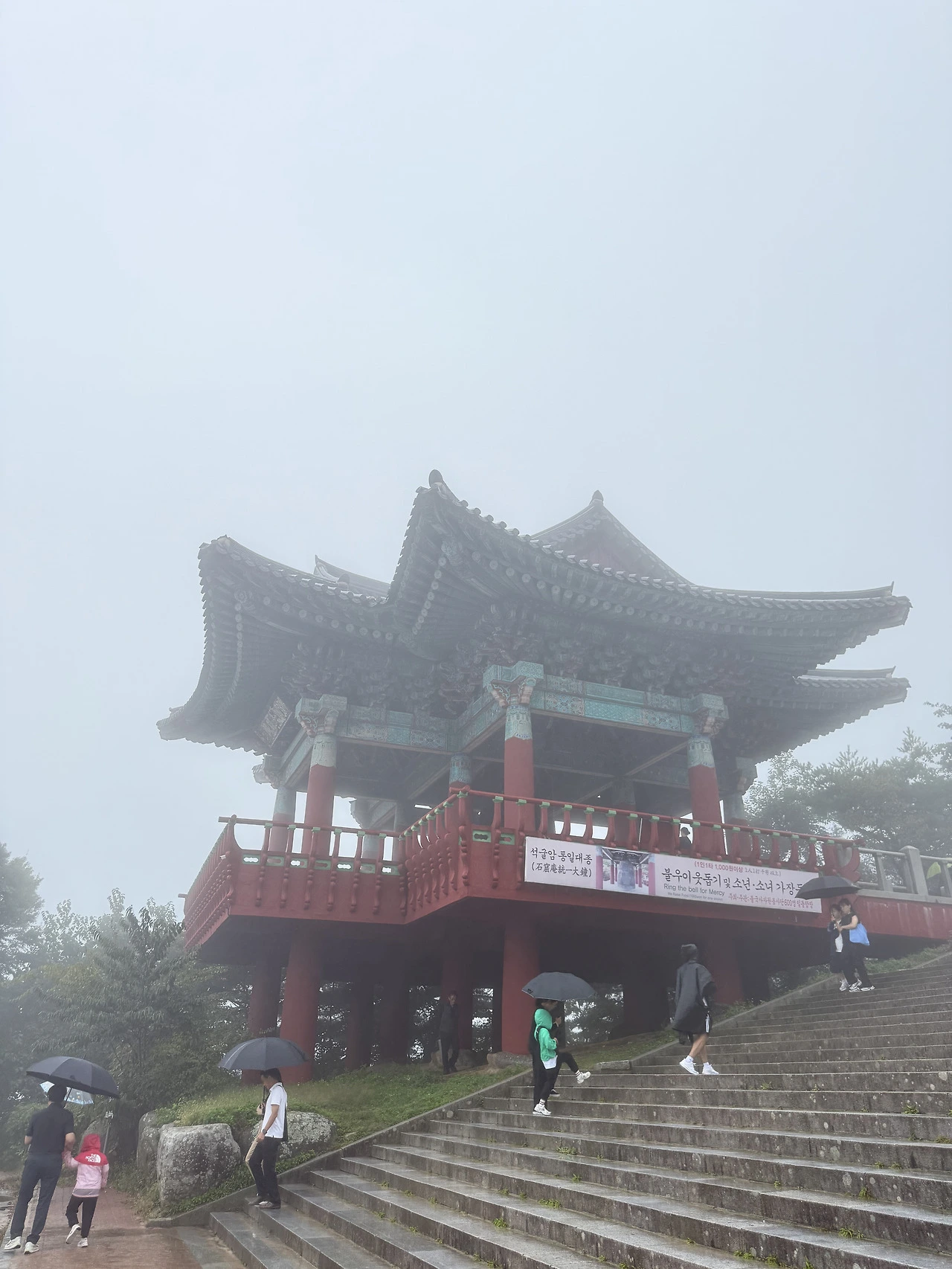 그리고 걸어서 석굴암에 가는데 거기서도 빗속에서 줄 서서 기다림.