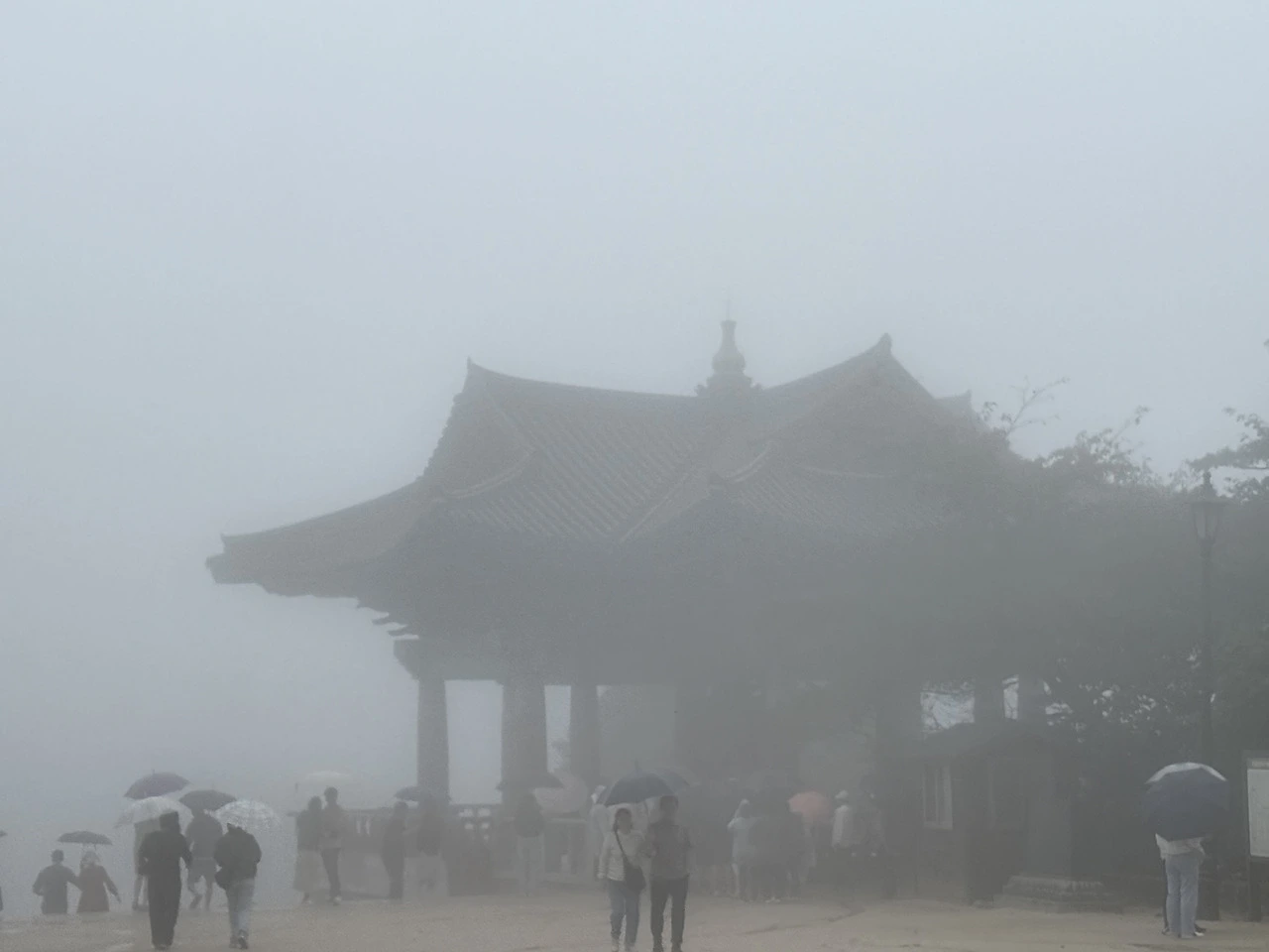 실제로는 명절 연휴를 낀 날 중 하나라 염주꾸러미처럼 돌고 도는 수많은 차량들에 끼인 상태였으나, 가는 비 인지 토함산을 두른 낮은 구름인지 짙은 안개인지 모를 거대한 습기가 군중들의 발소리까지 묻어버리고, 깊은 몽혼 속에서 낮게 울려 번지는 범종 소리가 비현실적이었다.
