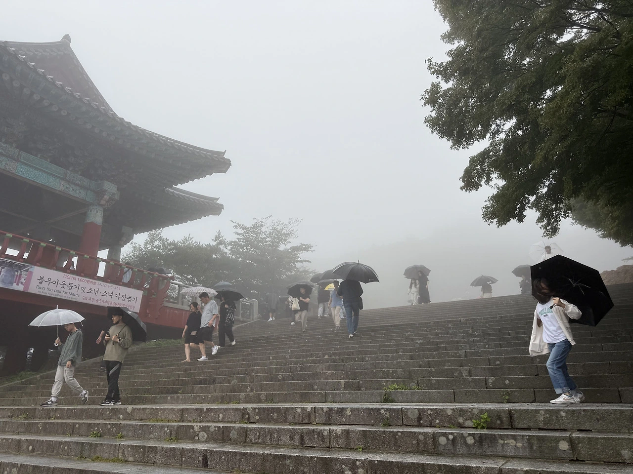 딸의 손을 잡고 희미하게 드러난 석굴암 일주문을 향해 다가서자 그제야 황톳길이 희미하게 드러났다. 왼편은 돌덩이라도 굴러 내릴 듯 위태한 절벽이요 오른편은 운무에 휘감긴 까마득한 낭떠러지.