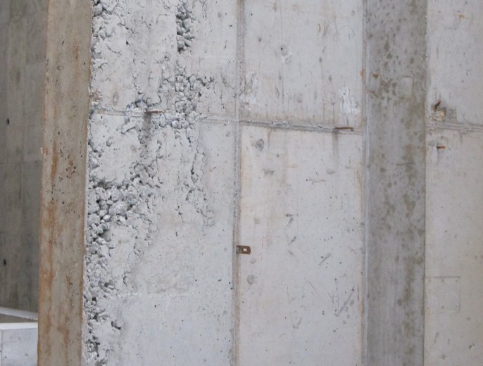 콘크리트를 붓고, 그게 굳은 이후에 다시 그 위로 층을 올리는 게 일반적인데 그 과정에서 타이밍이 안 맞으면 노출 콘크리트의 색상도 달라지고 연결부위가 드러나서 흉하다.