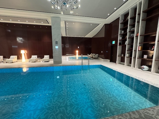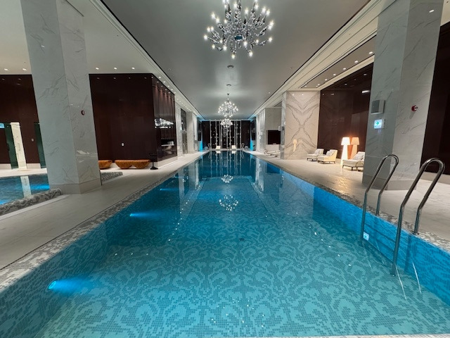 수영장은 중앙 풀과 자쿠지, 유아풀이 따로 구비되어 있었고 은은한 조명과 음악이 흘러나와 휴식에 적절했습니다. 물 온도는 차갑지 않고 적당했고, 자쿠지는 따뜻한 편이었습니다. 이용횟수는 제한이 없어서 투숙하는 동안 두 번 이용했습니다.