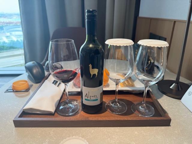 웰컴 기프트의 경우, 크레용 세트(16색, 컬러링 페이지 한 장), 스낵세트(2인), 과일&치즈 플래터+와인, 아메리카노 무제한(2인), 주류&안주세트 중 택1 또는 식음크레딧 $10이나 보너스포인트 중에 선택할 수 있었습니다. 저는 과일&치즈 플래터와 와인을 선택 했습니다.