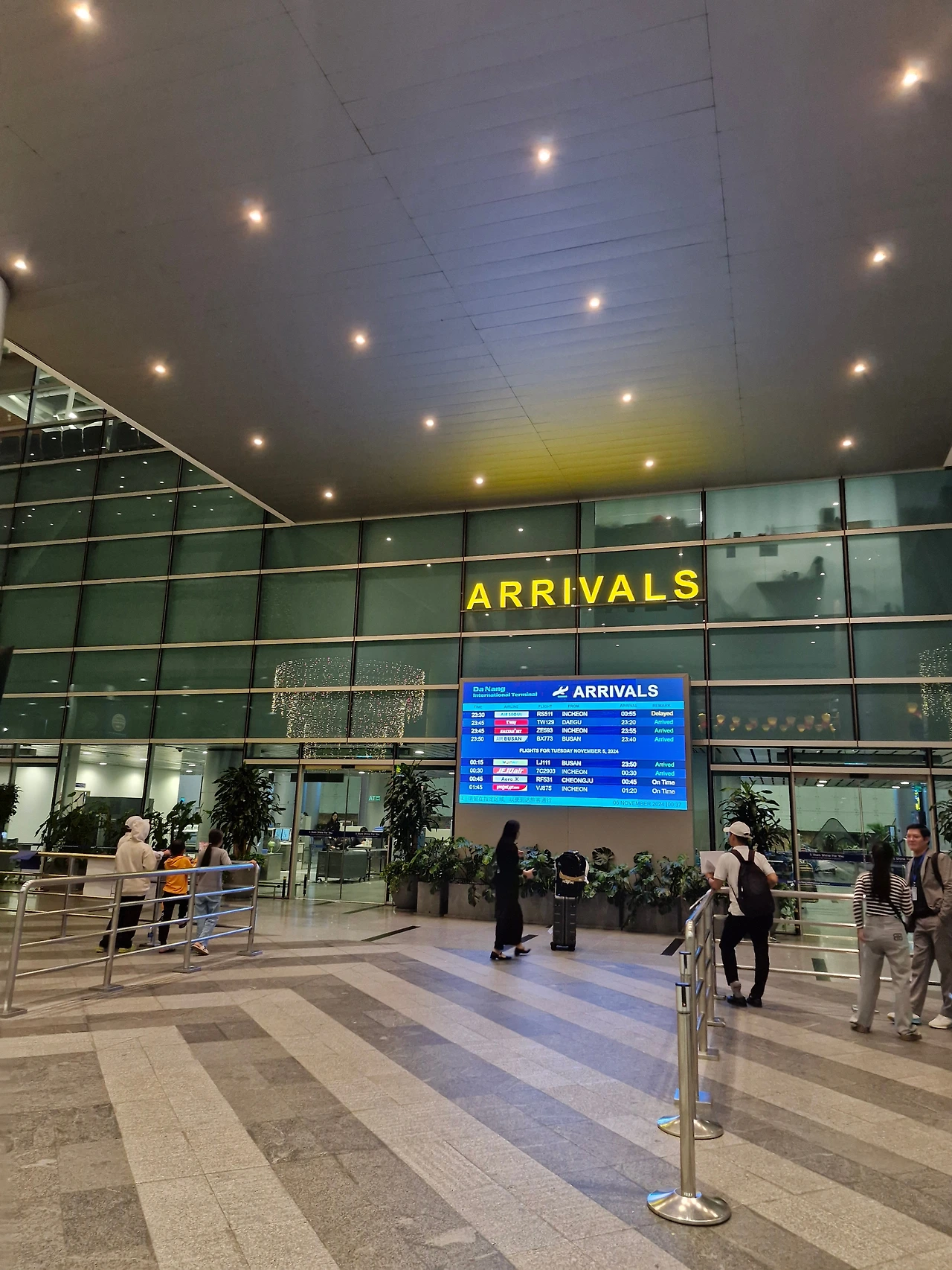 다낭 공항에 밤 11시 45분에 도착해야 했는데, 연착해서 12시 20분쯤에 도착한 것 같다.