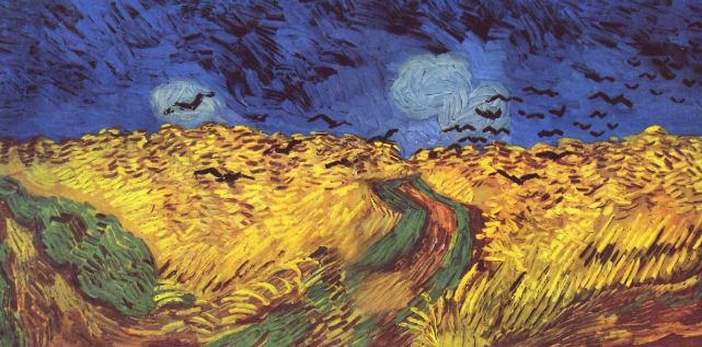 이후 고흐는 아를을 떠나 생의 마지막 70일을, 파리 북부의 오베르라는 마을에서 지내게 된다. 이곳에서 그는 ‘까마귀가 있는 밀밭’을 끝으로 파란만장했던 생을 마감하게 된다. 어떤 사람들은 이 그림이 그의 죽음을 암시한다고 하지만, 이러한 해석은 까마귀가 죽음을 상징하는 한국적인 해석일 것 같다. 다만 고흐는 이처럼 생긴 밀밭에서 충동적인 자살 시도를 하게 된다. 그것만으로도 매우 의미심장한 그림이기는 하다.
