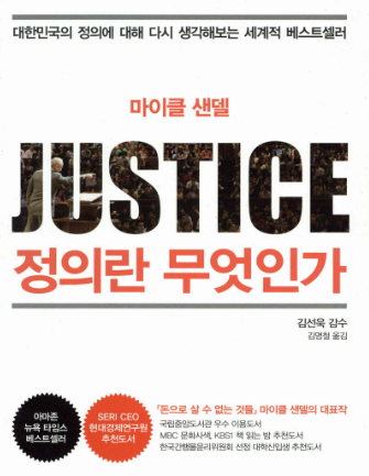 이 책이 왜 그렇게 많이 판매되었는지에 대해서는 논란이 있겠으나, 그 이유 중 하나는 한국 사람들이 ‘정의’에 대해 갖는 특별한 감정과도 관련이 있다는 것이다. 한국 사회가 불공정하다는 분노의 감정 속에서, 불공정의 원인이나 해결책 등을 알아보고 싶었다는 것이다.
