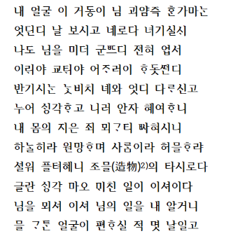 고등학교 때 지겹도록 배웠을 '속미인곡'의 일부를 보자.