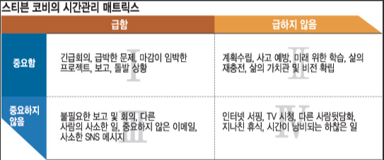 이는 마치『성공하는 사람들의 7가지 법칙』에서 말하는 '시간관리 매트릭스'를 연상시키기도 한다.