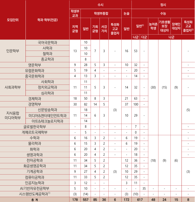 세 개 대학 모두 정시 수능은 꼼꼼하게 살피지 않았다. 아니 살필 필요가 없다고 생각했다. 그냥 똑같다. 서성한도 정시는 수능을 잘 보면 된다. 그냥 열심히 공부해서 수능 1등급을 목표로 하면 된다.