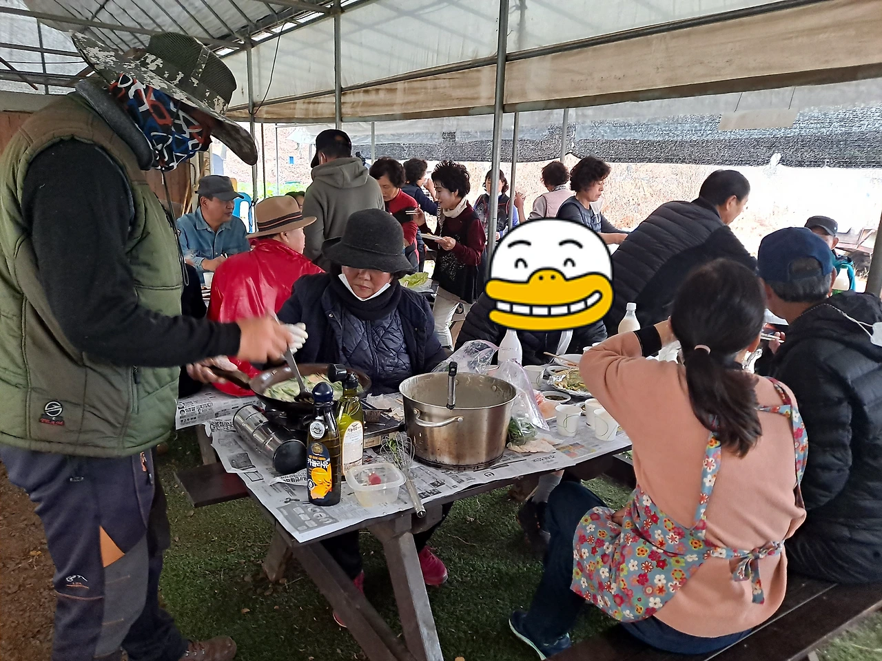 끝날 것 같지 않던 하천 작업이 끝났을 때 '우리 수고 많았으니 서로 축하하자! 며' 부침개 파티를 제안했다.