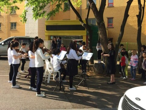그리고, 저는 뜻밖의 교육적 효과를 얻고 기뻤습니다. 다른 악기를 연주하는 아이들이 욕심 내어 학생자치회와 함께 <등굣길 버스킹>을 기획하였습니다. 여러 아이들이 개인이나 모둠별로 출연을 신청하여 다양한 연주를 보여주는 것으로 확대된 것이지요. 학생자치회가 주관하여, 아이들은 매주 목요일 등교시간에 맞추어 정문 안뜰에서 버스킹을 이어갔습니다. 그중 바이올린과 오카리나를 연주했던 두 아이는 깜짝 놀랄 만한 수준이었다고 기억합니다. 또 열의는 넘치는데 연주 솜씨는 어설퍼서 오히려 더 많은 격려를 받았던 아이도 있었습니다.