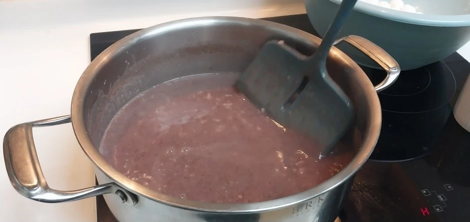 저는 냄비에팥죽을 끓이려고 양을 가늠하여 찹쌀가루를 익반죽 했습니다. 그런데 새알심을 만들고 보니, 그 양이 너무 적은 것 같았습니다. 새알심만 넣고 끓이기에는 아무래도 건더기가 모자랄 것 같아서 찹쌀도 넣었습니다. 제 고향에서는 동지팥죽을 끓일 때 팥물에 새알심만 넣고 끓이는데, 하는 수 없이 다른 지역의 방식을 끌어와 응용한 것이었지요.