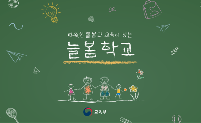 늘봄학교는 정규수업 외에 제공하는 종합 교육 프로그램으로 학교와 지역사회의 다양한 교육자원을 연계하여 학생의 성장·발달을 위해 제공하는 교육과 돌봄입니다. 초등학교의 방과후학교와 돌봄을 통합·개선한 단일체제인 셈이지요. 앞으로는 기존의 초등학교 방과후학교와 돌봄은 늘봄학교에 흡수되어 운영되고, 결국 정규 교육과정 외에 학교에서 이루어지는 교육과 돌봄은 늘봄학교 하나의 체제만 존재할 것으로 예상됩니다.