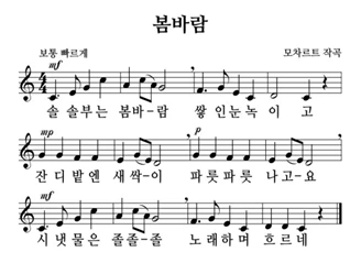 우리들이 잘 알고 있는 동요 중에 모차르트 곡이 여러 곡 있지요. 그중 <반짝반짝 작은 별>과 <봄바람>이 널리 알려져 있는데, 저는 <봄바람>과 얽힌 일화가 있어서 절대 잊히지 않아요.
