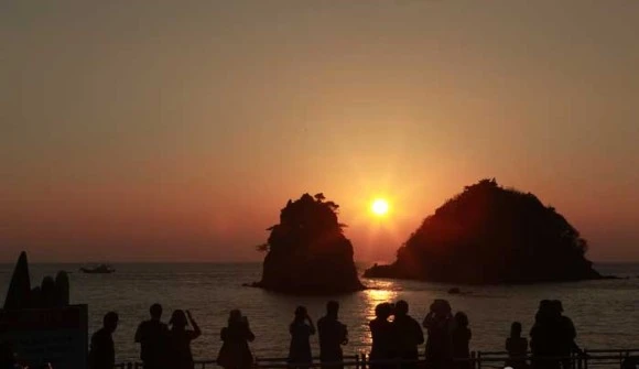 일몰 예정 시간보다 일찍 도착한 우리들은 해수욕장 모래밭을 걸어 바다까지 왔다 갔다 하고 있었습니다. 이윽고 바다가 붉어지기 시작했지요. 꽃지 해수욕장에서 보는 일몰 광경은 황홀했습니다. 그런데 경자가 옆에서 눈물을 찍어내고 있었습니다.