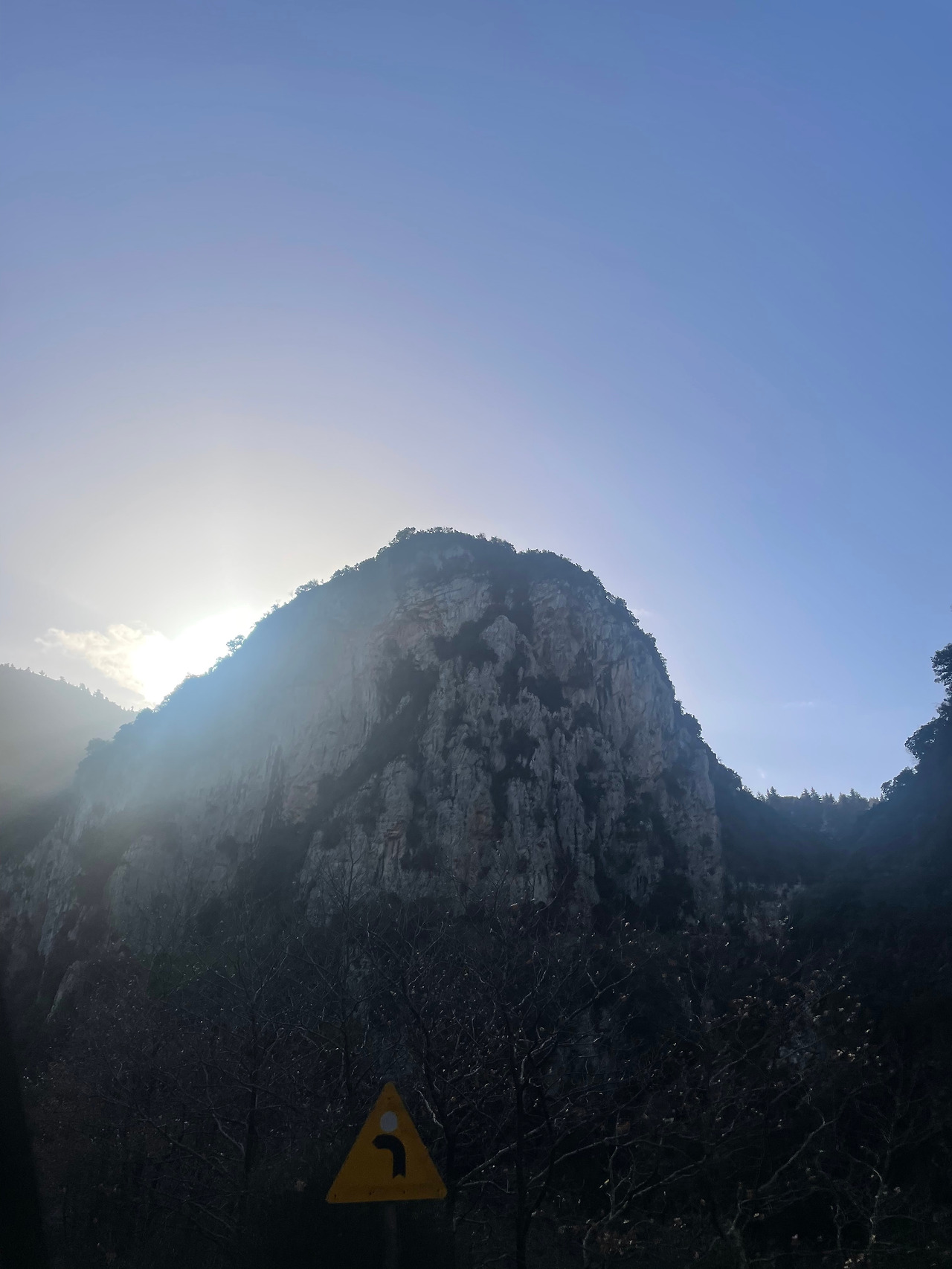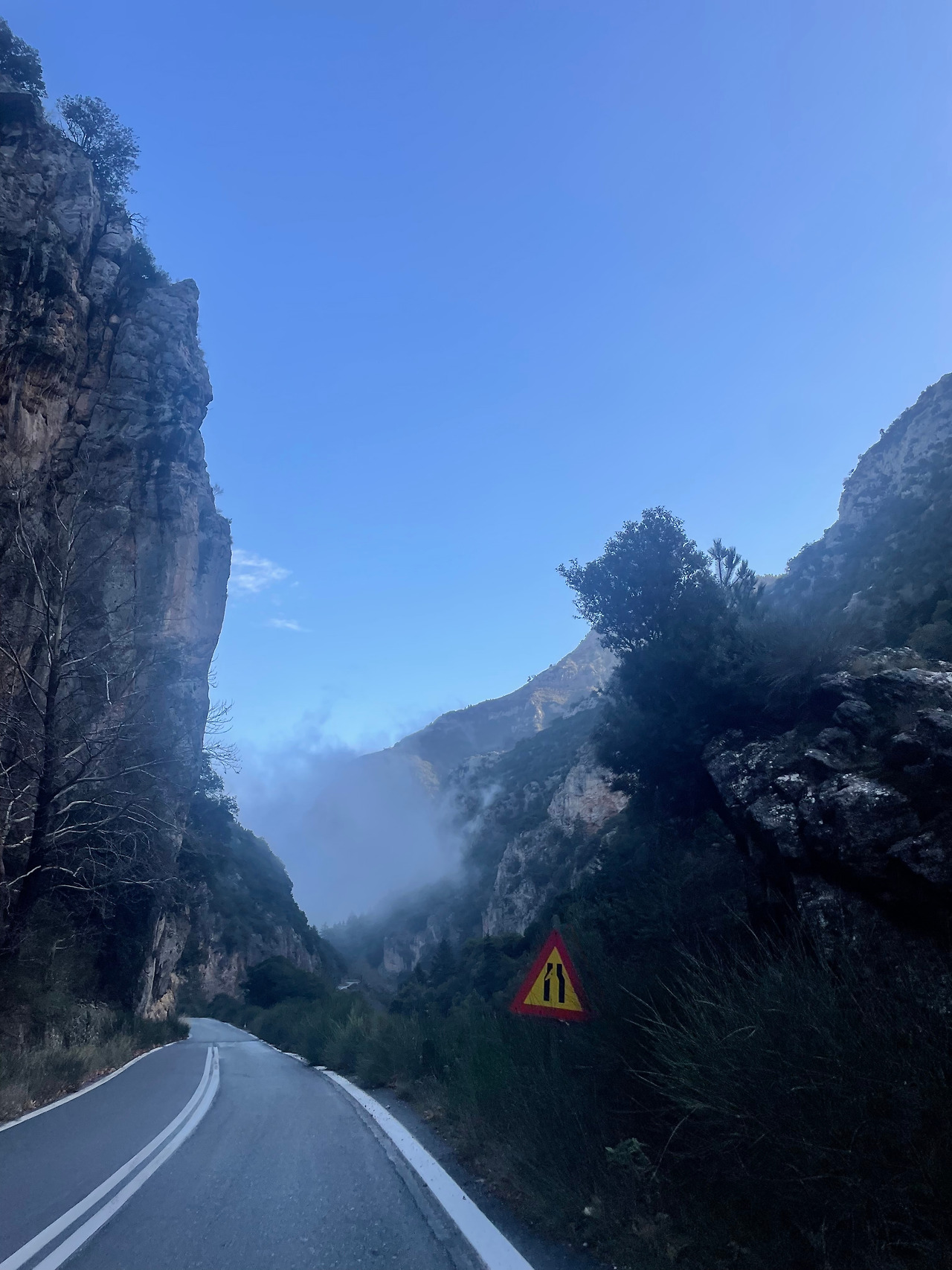 칼라바카에서 스파르타로 넘어가는 길이 두 개가 있었는데 산을 돌아가는 고속도로, 산을 가로지르는 국도. 산을 가로지르는 국도는 그리스에서 가장 험한 산지지만 유명한 드라이브 코스라고 알고 있었다. 산을 가로지르기로 했다. 아침에 스파르타 방면으로 가려면 해가 정면에서 비치기 때문에 선글라스를 반드시 챙겨야 생존할 수 있다.