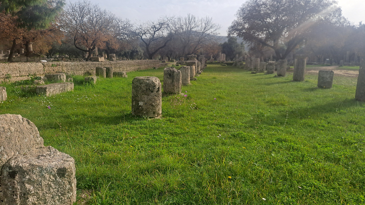 올림피아 마을에 도착했다. 반대쪽으로 도착했다. 원래 입장료를 내야 하는데 입장료 안 내는 구멍으로 들어왔다. 사람들이 이상하게 쳐다봐서 안내소에서 주차장 어디냐고 물어봤는데. 안 물어 봤으면 입장료 없이 입장할 수 있었을까? 올림피아에는 올림픽경기장, 올림피아 무도관, 제우스 신전, 헤라 신전이 있다. 딴 것도 더 있겠지. 근데 내가 어케 아노?? 유명한 것만 알지. 오랜만에 평화로운 공원같은 유적지였다. 근데 보통 이런 아주 오래된 유적지들은 관광지로 개발되기 전에 농장으로 먼저 사용이 되었던 것 같다. 유적지 안에 올리브 농장이 있는 것 같다. 뭐 여튼. 이 올림피아라는 곳에는 슬픈 전설이 있는데, 나는 전설 같은 건 믿지 않는다. 올림픽경기장에서 달리기 시합 한번 하고 숙소가 있는 칼라바카로 출발했다.