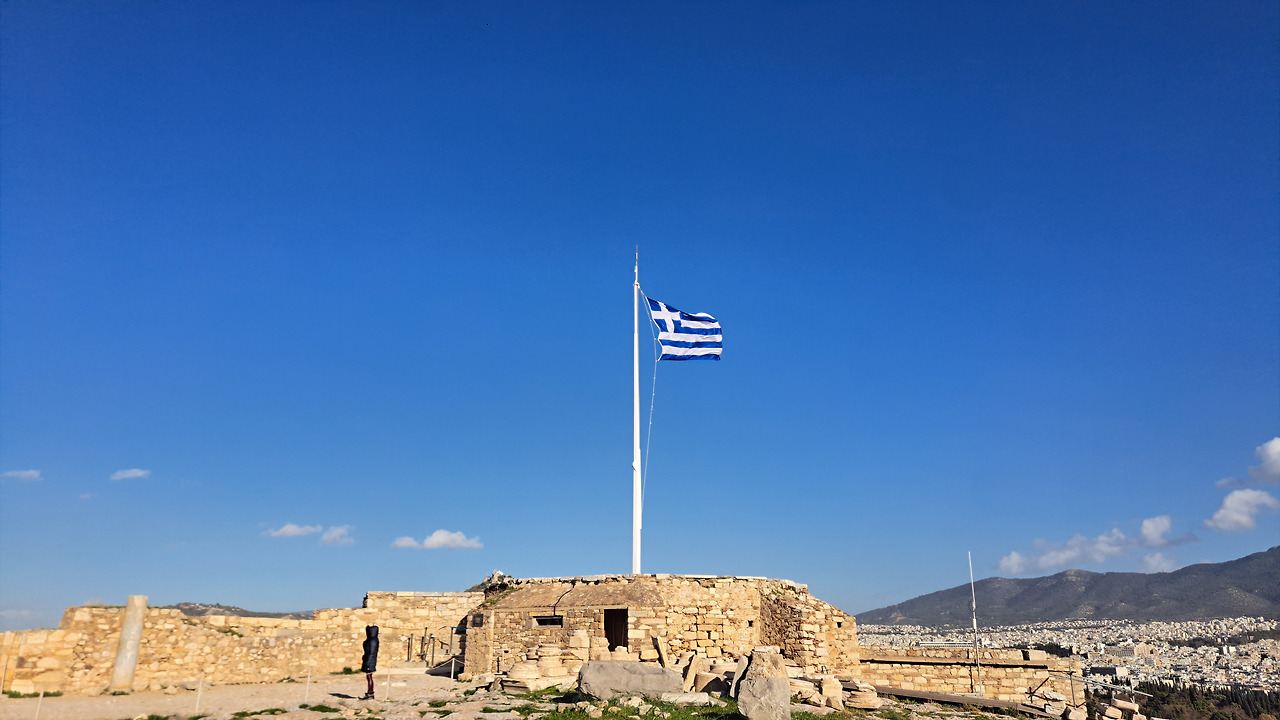 아무튼 아크로폴리스까지 힘들게 올라갔다. 아크로폴리스는 1인당 60유로였던 것 같다. 아니, 가격이 유적지마다 다른 게 어이가 없네, 규모는 델포이나, 올림피아나 다 거기서 거기에다가 결국 그냥 부서진 돌무더기 아님. 근데 아테네 시에서 혼자 불쑥 튀어나온 지대여서 그런가 이 위에 올라오니 바람이 엄청 불었다. 서로 이야기가 안 될 정도로 바람이 강했다. 올라오니 한국인들이 많았다. 아 한때 내가 "그리스 문화" 교양 수업 들으면서 진짜 열심히 아크로폴리스 구조 외웠는데 하나도 기억 안난다. 안에는 기둥이 몇개, 밖에는 기둥이 몇개, 도리스식, 이오니아식, 코린트식, 이런 거 다 외웠는데. 근데, 확실히 입장료 값을 못했다. 그리고 파르테논 신전 옆에, 기둥을 여성의 모습으로 만든 보물창고는 여행 책자에서 보이는 것 만큼, 절벽에 있지도 않았고, 크지도 않았다.
