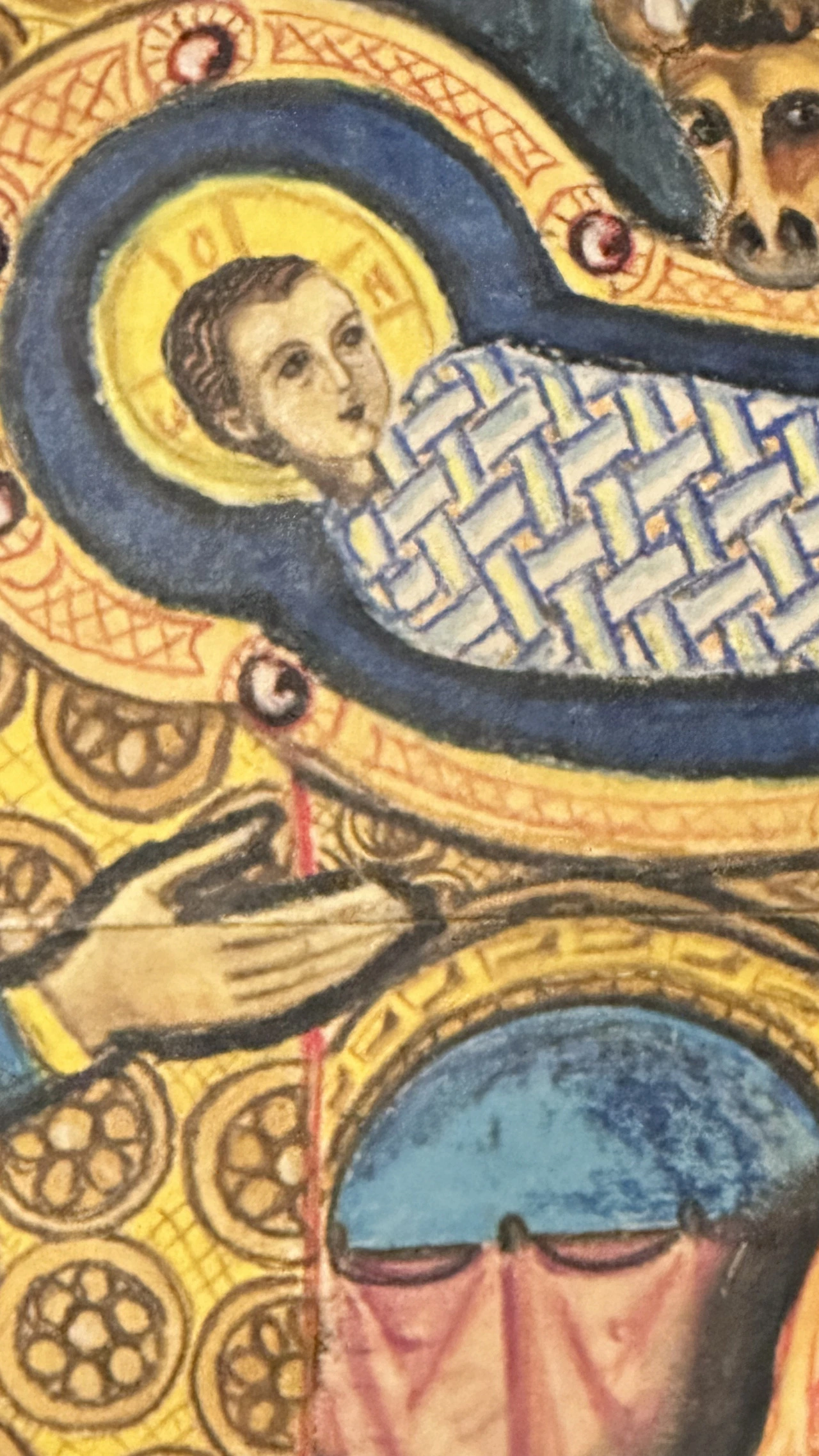 (이 그림은 “그리스도의 탄생(The Nativity of Christ)”, 즉 예수의 탄생 장면을 묘사한 비잔틴 양식의 사본화(illuminated manuscript) 로 성지순례중 예수탄생지를 방문하면서 찍은 사진으로 기억한다. 2023년)