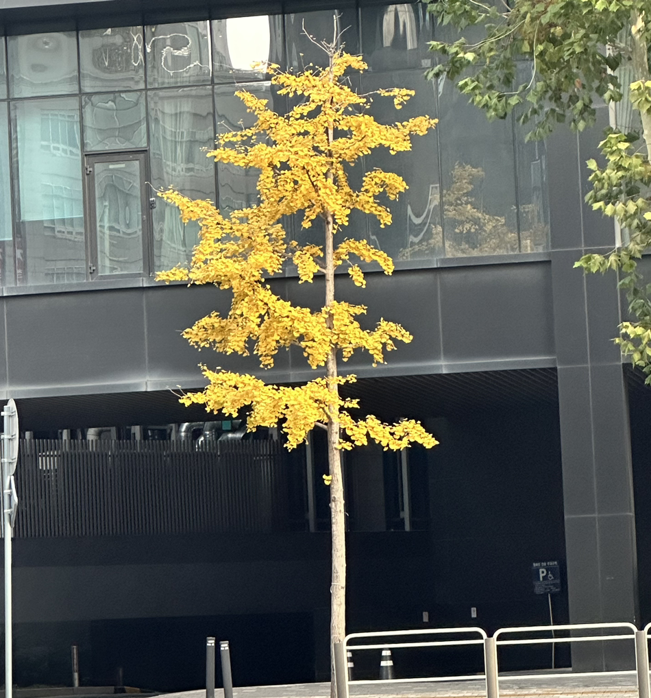 노란 은행나무가 밝게 눈에 띤다. 운전 중 사진에 담았다.
