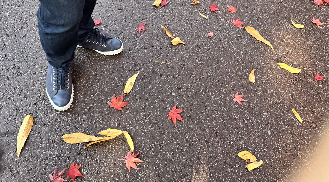 노랗게 빨갛게 물든 단풍이 이뻐 남편 발과 함께 사진에 남겨보았다.