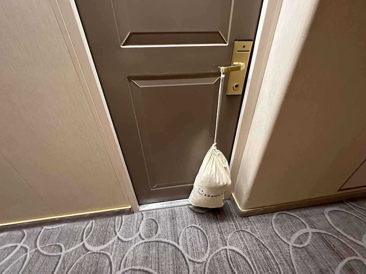 우리가 선택한 여행패키지엔 세탁을 한번 무료로 해 준다. 세탁주머니에 세탁물을 넣고 문손걸이에 달아두면 다음날 세탁한 옷들을 방으로 가져다준다.