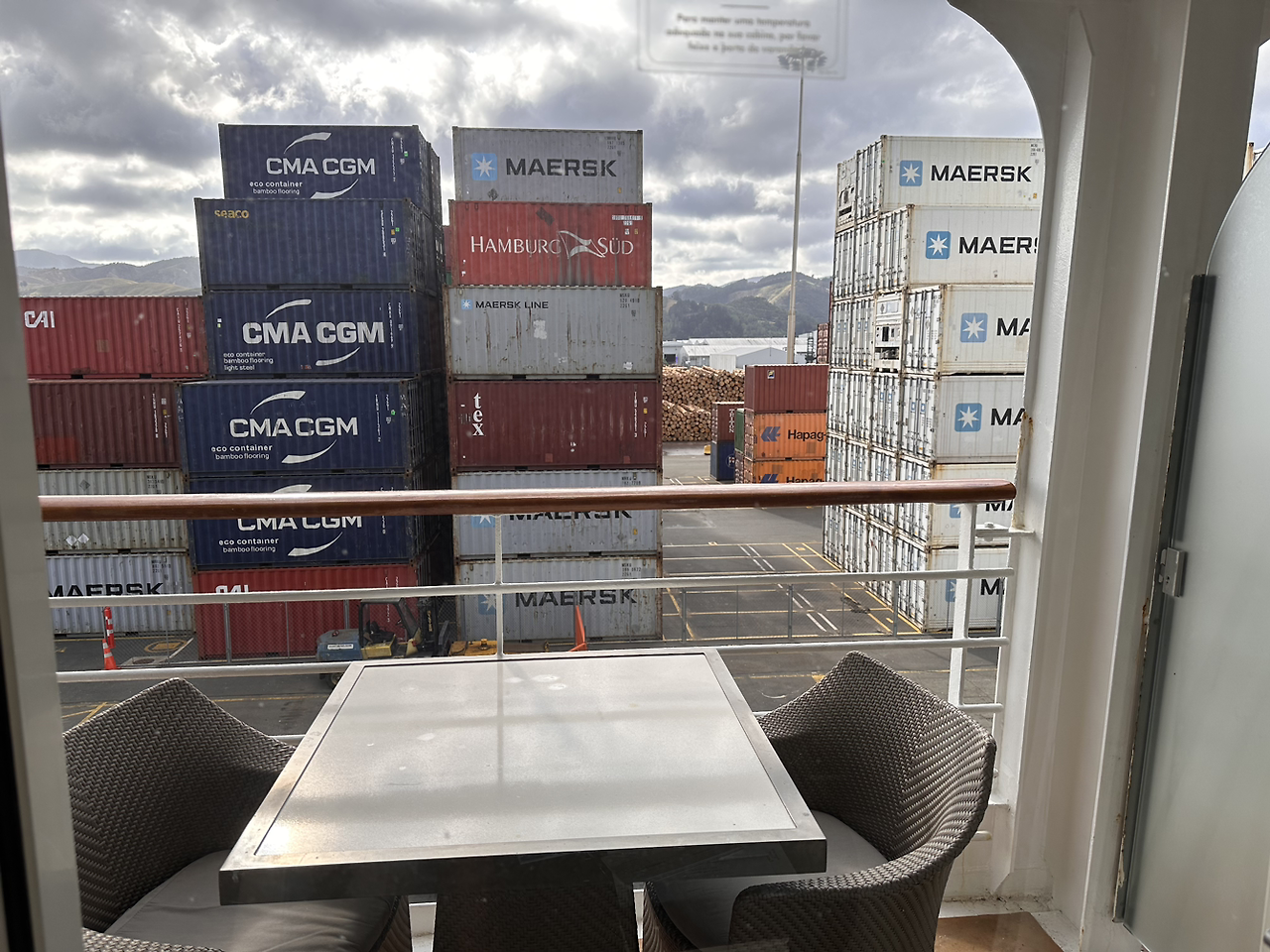 아침에 넬슨항구에 도착했다. 커틴을 제치고 밖을 내다보니 쌓여진 컨테이너들과 엄청난 목재가 보인다. 이렇게도 많은 소나무들이 이 아름다운 나라에서 잘려 나가니 내 마음이 다 아프다. 뉴질랜드걱정, 지구걱정. 걱정 걱정.