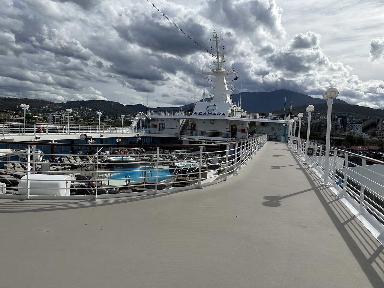 오후엔 배 10층 꼭대기까지 올라가 보았다. 저깅 트랙이 있었어 저깅은 물론 산보도 할 수 있게 되었고, 카드룸이 있었고 건식바가 있었고 그림 그리는 방도 있었다.