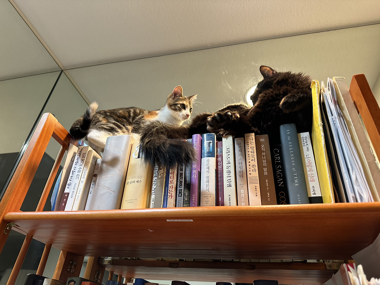 (아래 사진은 내가 공부할때마다 나를 찾아주는 나의 공부 팀멤버, 고양이 두마리이다.)