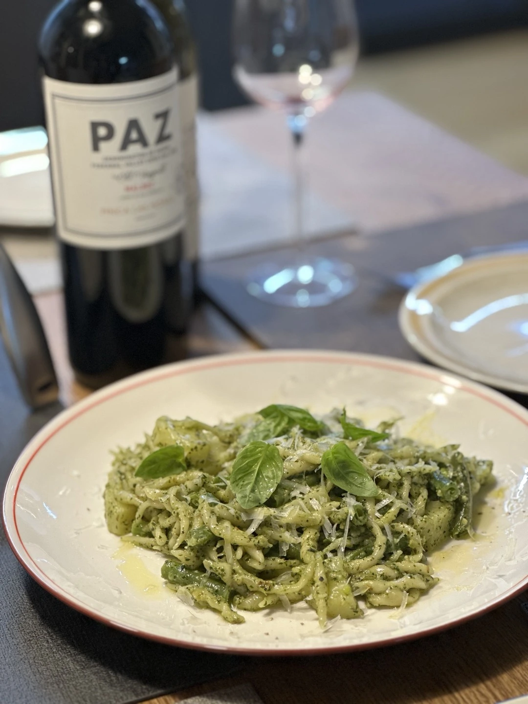 오랜 기간 축척된 전통과 노하우가 반영된 면의 질감과 페스토의 어울림이 아주 훌륭하다. 트로피에를 만드는 기법을 스토로피나레(Strofinare)라고 하는데 손바닥을 사선으로 움직여 면을 만드는 방식이다