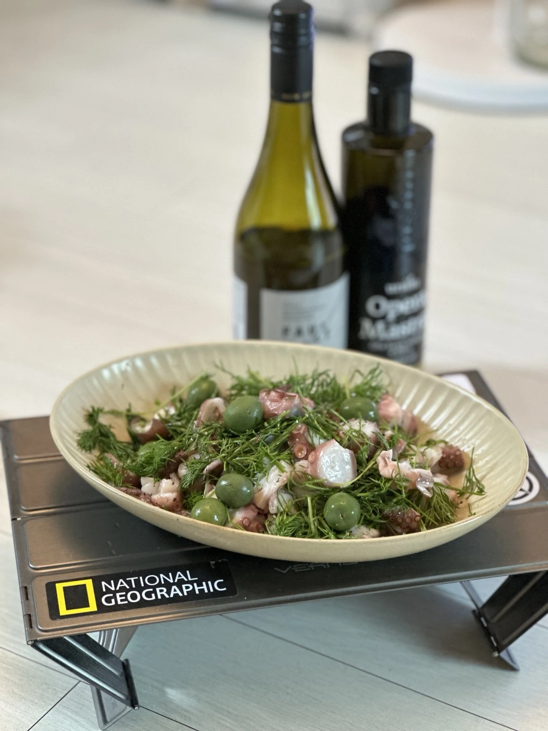 두껍지 않게 썰어 엑스트라 올리브오일, 소금, 후추, 딜(많이), 올리브를 넣고 먹는다.