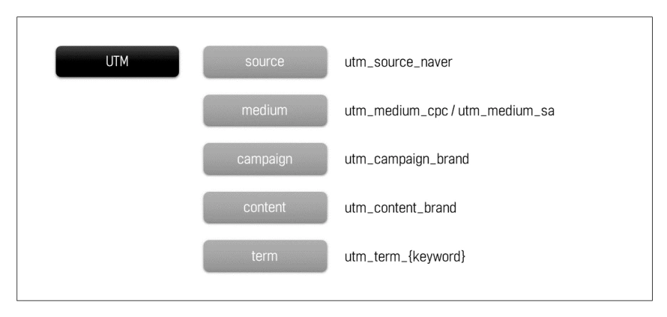 만약 검색 광고와 디스플레이 광고로 구분한다면 sa, da로 표기할 것이다. 혹은 과금 방식에 따라 cpc, cpm으로 표기할 수도 있다. 예를 들어 네이버 검색광고하면 sa와 cpc 중 선택해서 utm_medium을 붙이면 된다.