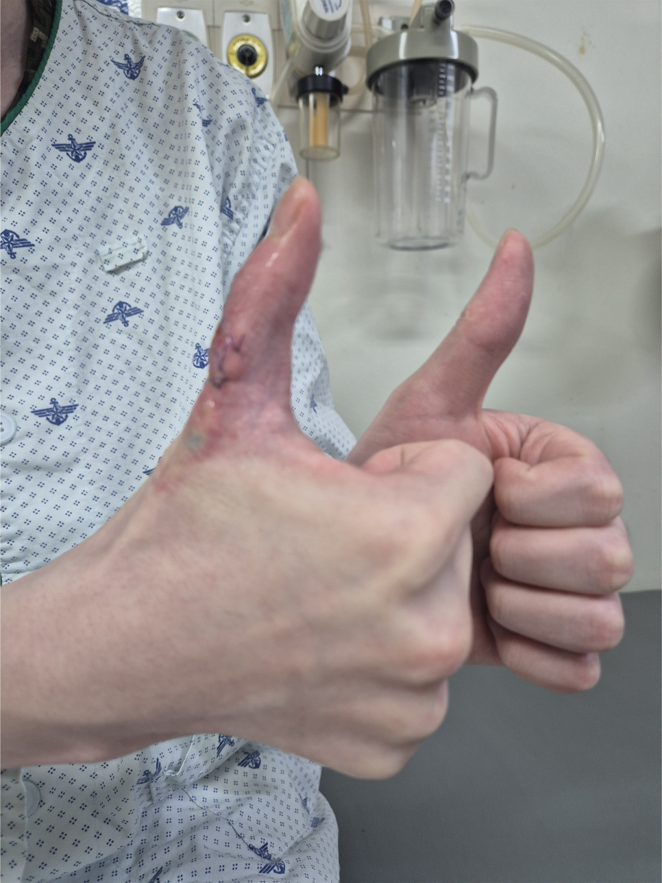 처음에는 올라가지 않던 손가락도 수개월간 재활을 쉬지 않고 하며 점점 기능을 회복하였다. 손가락을 큰 불편감 없이 움직일 수 있게 되었다.