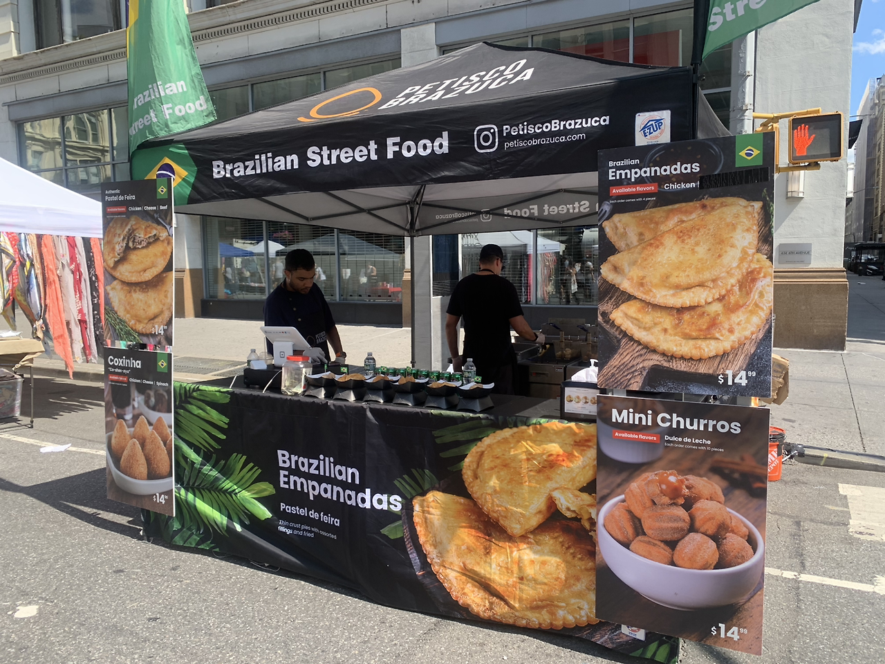 이날은 기숙사 바로 앞에서 스트리트 페어가 열린 날이라 브라질 음식이 그립다는 Bruny와 함께 방문하기로 하였다. 그렇게 정말 많은 나라의 음식들 사이에서 한 군데 열린 브라질리안 스트리트 푸드 천막을 한 곳 발견할 수 있었다. 난 사실 코리안 타운이 걸어서 다닐 수 있을 정도로 멀지 않은 곳에 있기 때문에 한국 음식이 엄청 그립게 느껴지기도 전에 많은 한국 음식들을 먹을 수 있었는데, Bruny는 브라질 음식이 엄청 그리웠을 것 같다. 이렇게라도 Bruny가 브라질 음식을 맛볼 수 있어 다행이다.