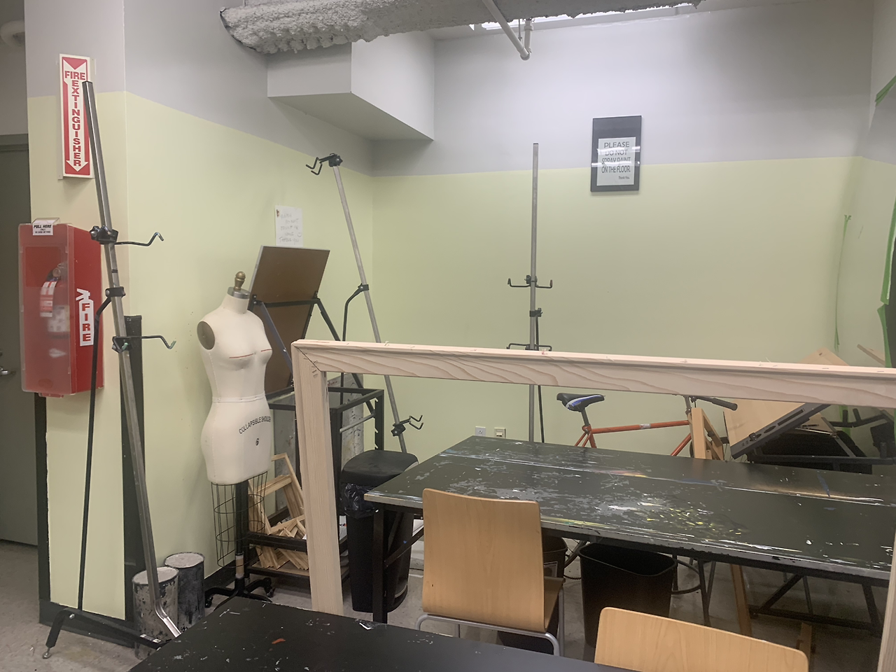 그런데 하필이면 벽에 빨간 물감이 피처럼 묻어져 있어 무서웠다. 패션 디자인학과 학생들을 위한 마네킹도 으스스하게 느껴지고 말이다. 어김없이 진행된 자기소개 시간에 이를 보여주며 얘기했더니 다들 피처럼 보이니 무슨 일이 벌어진 거냐며 조심하라고 농담하기도 했다.