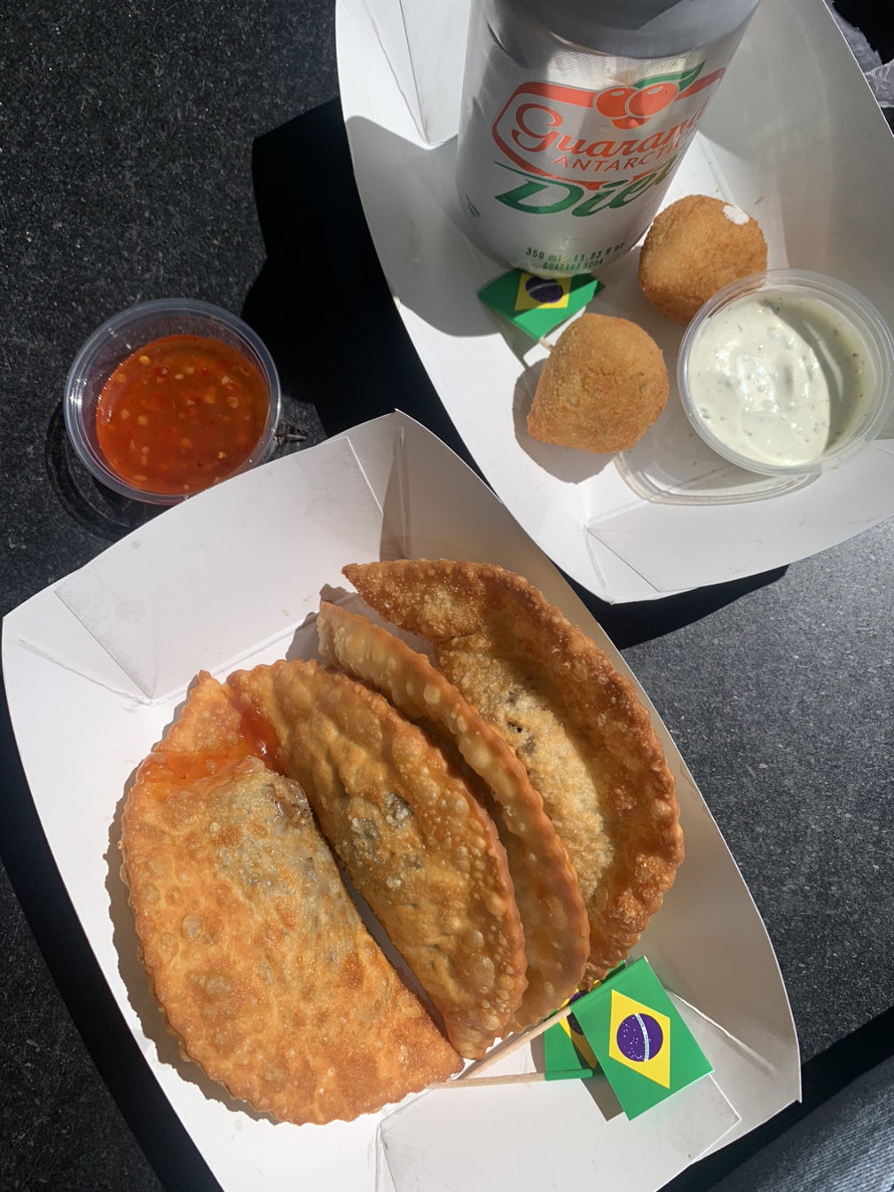 브라질리안 스트리트 푸드 천막을 발견하고 사 먹은 음식들엔 귀엽게 브라질 국기도 꽂아져 있었다. 처음 도전해 보는 음식들이었지만 왜인지 맛은 친숙하게 느껴졌다. 더운 날씨 탓인지 함께 사 먹은 Guarana antarctica라는 음료수가 정말 꿀맛이었는데, 브라질 사람들이 즐겨 마시는 음료수라고 한다.